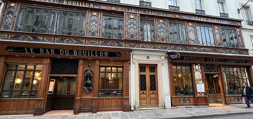 This concept of organization, along with highly decorated surroundings (in the Art Nouveau style), quality food, moderate prices, and cleanliness, was completely new. And much like their department store counterparts, they were wildly popular. By 1893 there were 400 bouillons in Paris alone.